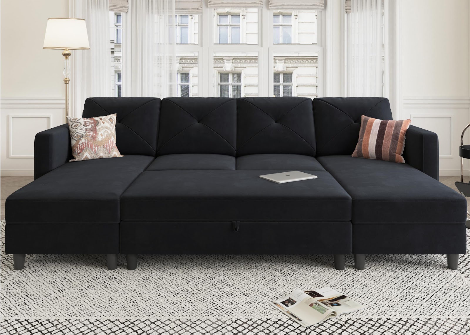 One of the standout features of this sectional sofa is the built-in storage space in both ottomans. We love being able to store magazines, remote controls, and other items out of sight, which helps keep our living room clutter-free.
