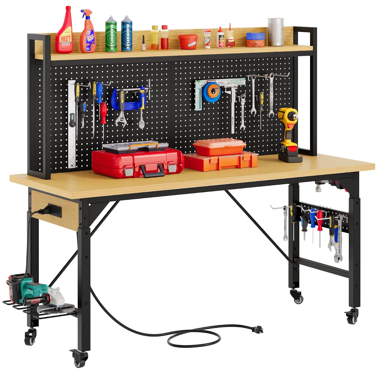 - The heavy-duty steel construction ensures that the workbench is durable and long-lasting.